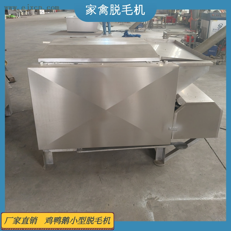 2. 工作流程:先将宰杀后的家禽浸烫均匀,送入机器;上下辊相对转动,胶棒通过摩擦与对搓脱羽;喷淋水同步带走羽毛;单批次脱毛约 30–50 秒;完成后通过出料口送出白条禽;脱毛率可达 95%–98%,且不易破皮、断翅。