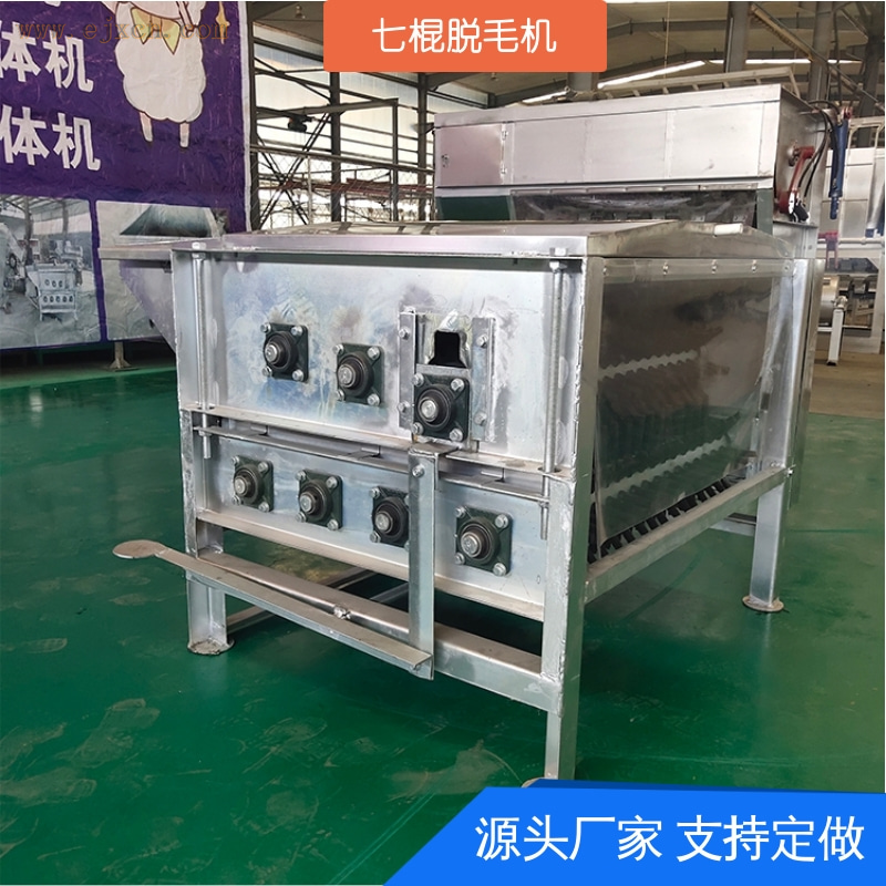 七棍(七辊)家禽脱毛机,它是中小型家禽屠宰加工的主流设备,诸城本地有大量厂家生产,兼具效率与对禽体的保护性。