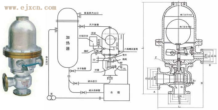 3、外形尺寸较大,适用于较大背压力且不会泄漏蒸汽,排出的凝结水是接近蒸汽压力的饱和水,故有利于提高本阀门的设备热效率和二次蒸汽利用的节能特点。