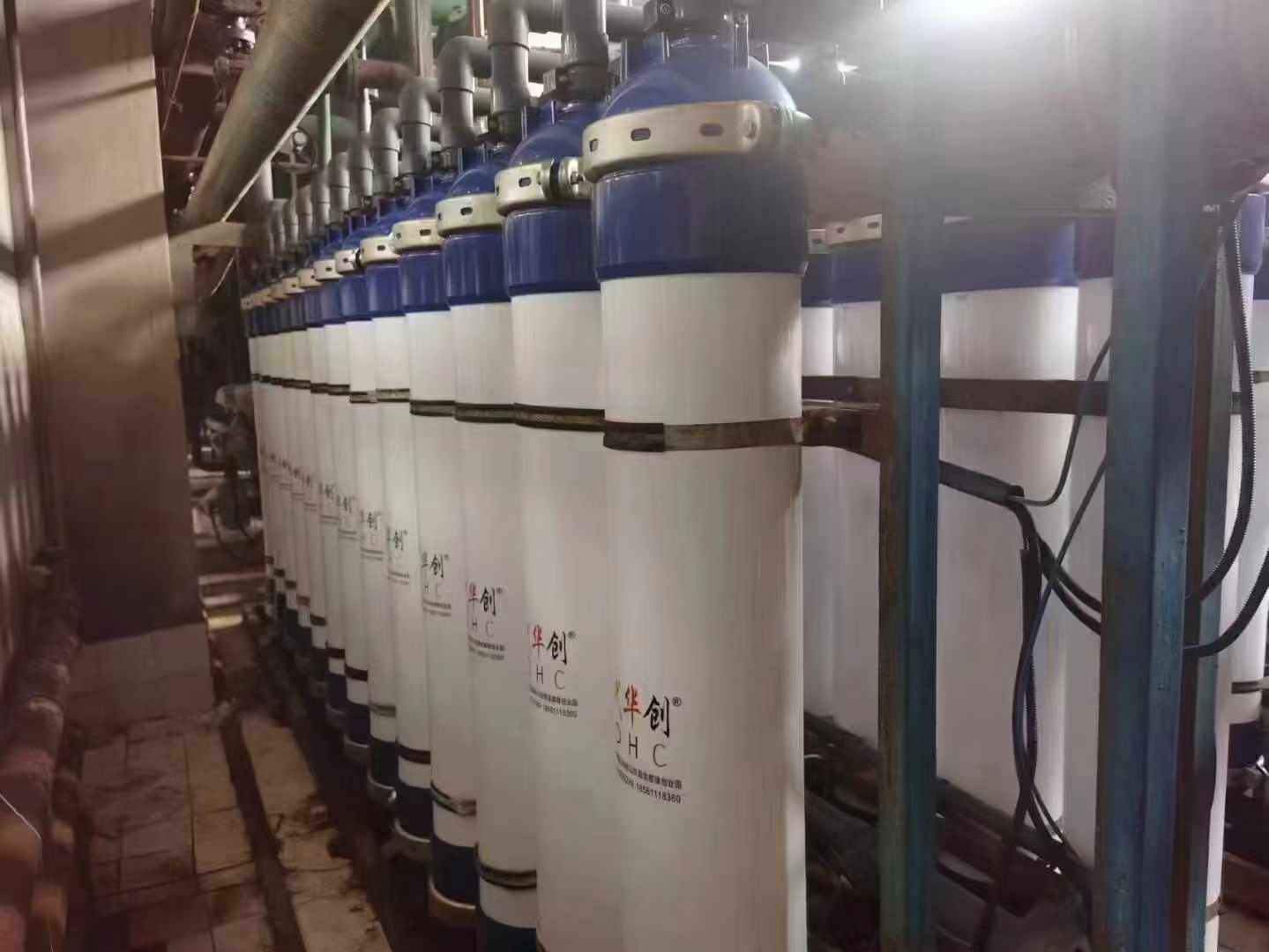 5、膜生物反应池的曝气管路分为两路,一路对周边活性污泥进行曝气,另一路对膜组件的膜片进行曝气。其优点为通过对膜片曝气产生的冲刷力使膜片相互拍打,这样可以抖落附在膜孔表面的钙化污泥,使膜通量大大提高延长了膜的使用寿命,从而降低了运行成本。