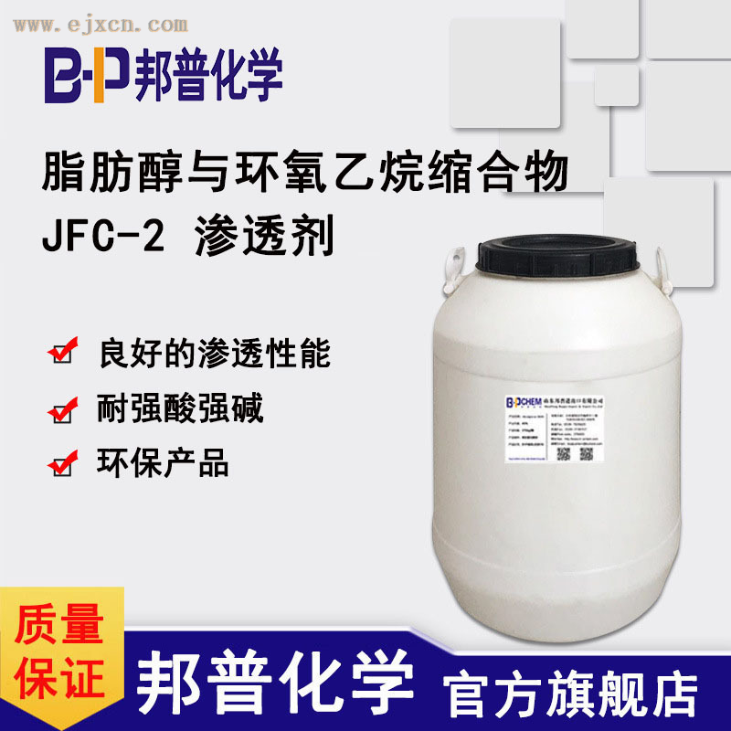 渗透剂JFC-2是环氧乙烷与脂肪醇的缩合物,具有良好的渗透性能,加快清洗时间,使产品更好地渗透到污垢中,多用于纺织印染、织物清洁等。