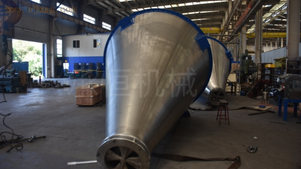 1.锥形螺带混合机由立式电机通过摆线针轮减速机直联主轴,主轴上有大下两圈螺带。