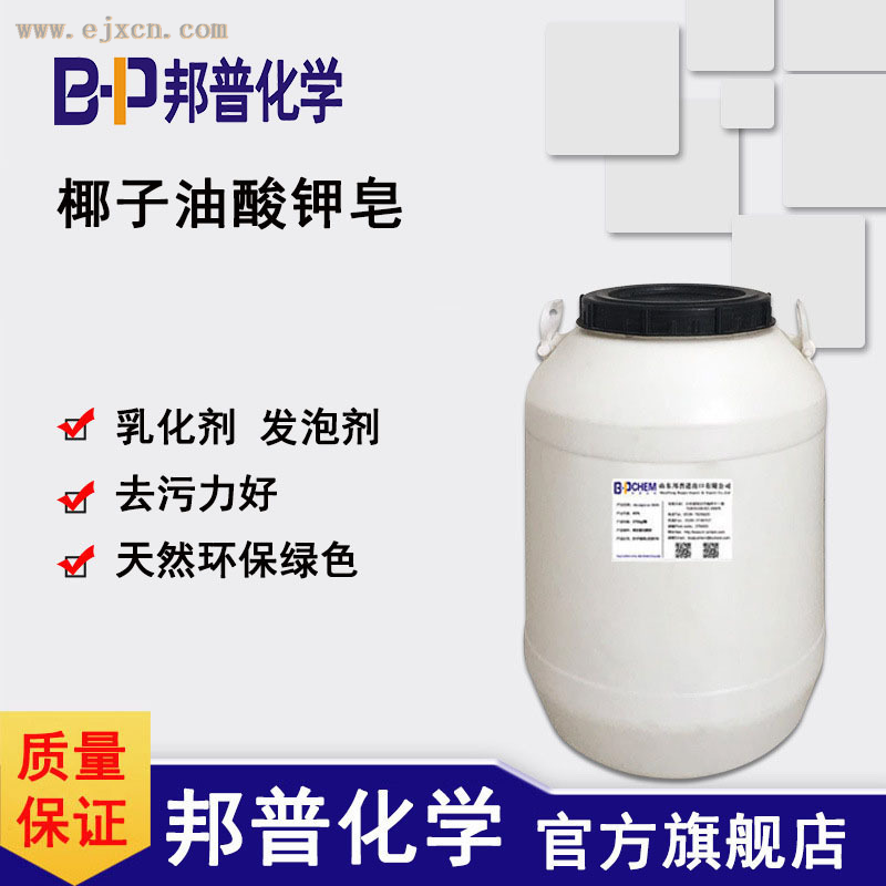 椰子油酸钾皂是以椰油为原料经皂化反应制得的阴离子表面活性剂,比月桂酸钾皂更为环保,适用于洗衣液、沐浴露等日化洗涤产品。
