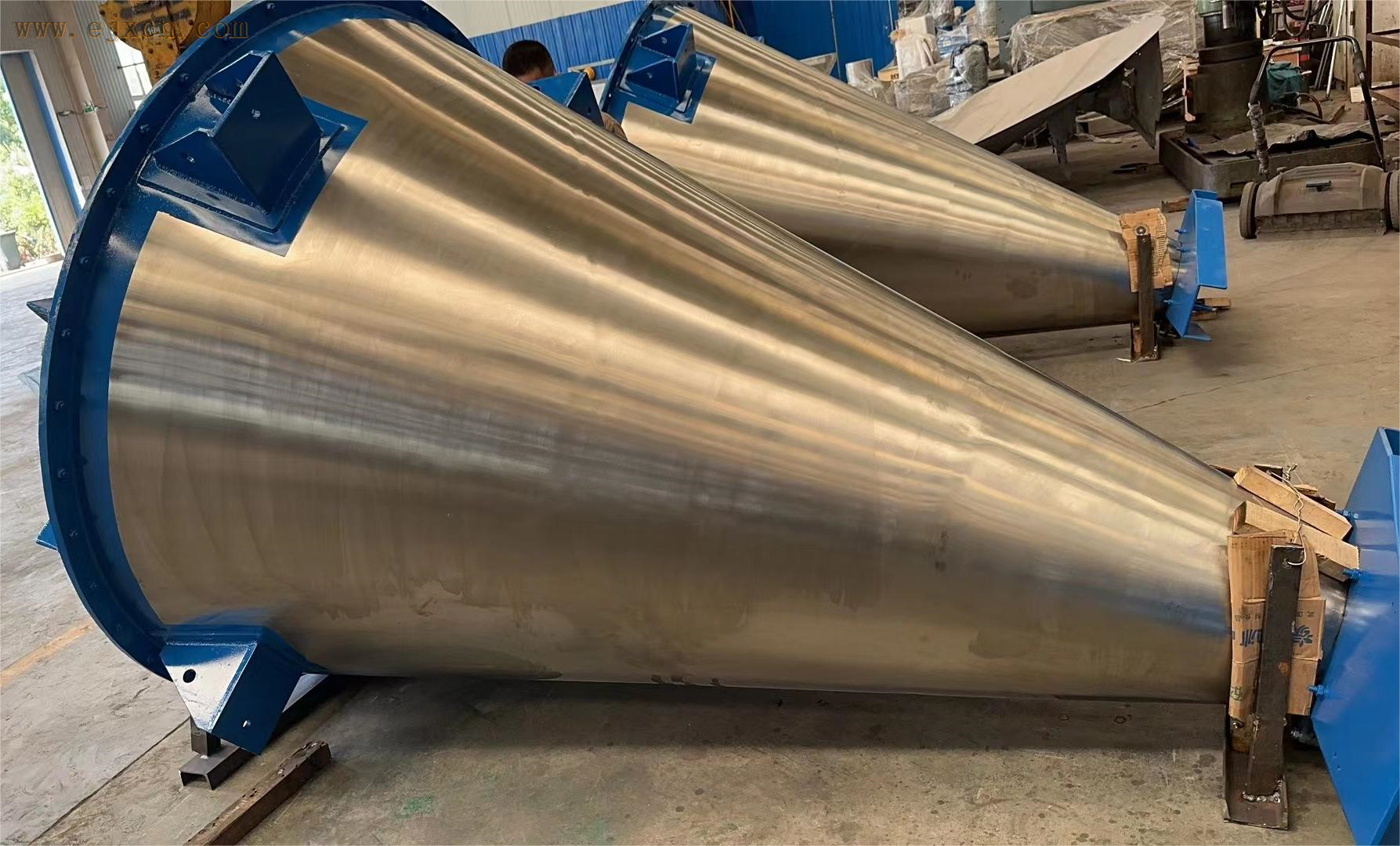 2.根据设备动力要求可以设计沿桶体螺带和中间轴带螺旋两种形式。筒体可以设计为全倒锥形和上部圆桶型,在物料比例在1‰加入时均匀度达到98%。