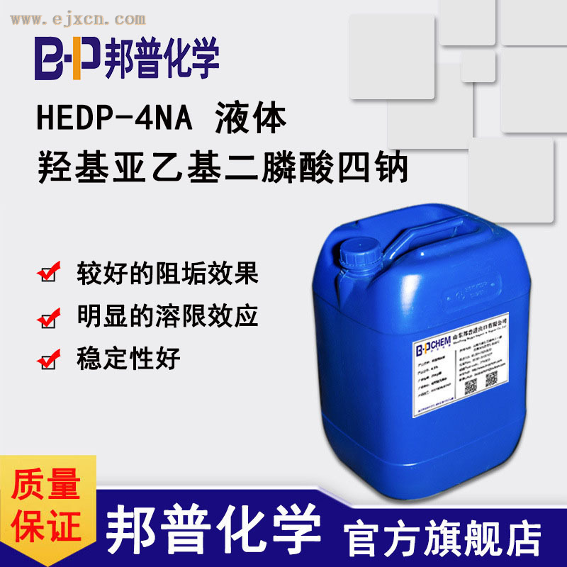 HEDP-4NA是HEDP的钠盐,是一种有机膦酸类阻垢缓蚀剂,能与铁、铜、锌等多种金属离子形成稳定的络合物,能溶解金属表面的氧化物,在250℃下仍起良好的缓蚀阻垢作用。