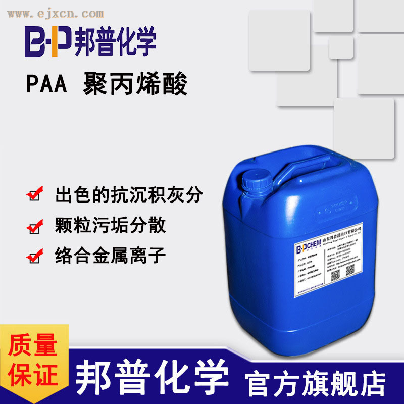 PAA聚丙烯酸易溶于水,可在碱性和中浓缩倍数条件下运行而不结垢。PAA能将碳酸钙、硫酸钙等盐类的微晶或泥沙分散于水中不沉淀,从而达到阻垢目的。本品除具有阻垢性能外,还能对泥土、腐蚀产物等无定性物具有分散作用,是一种分散剂。