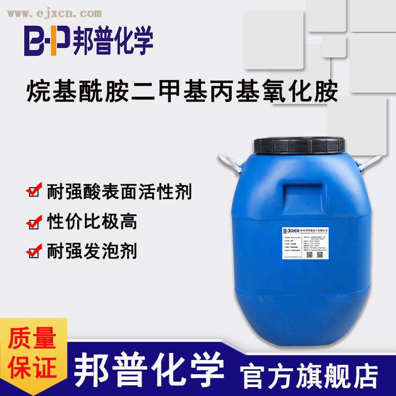 烷基酰胺二甲基丙基氧化胺是用双氧水对烷基胺氧化而成的两性表面活性剂,有良好的净洗能力、发泡能力,耐强酸,可在强酸体系中作发泡剂使用。