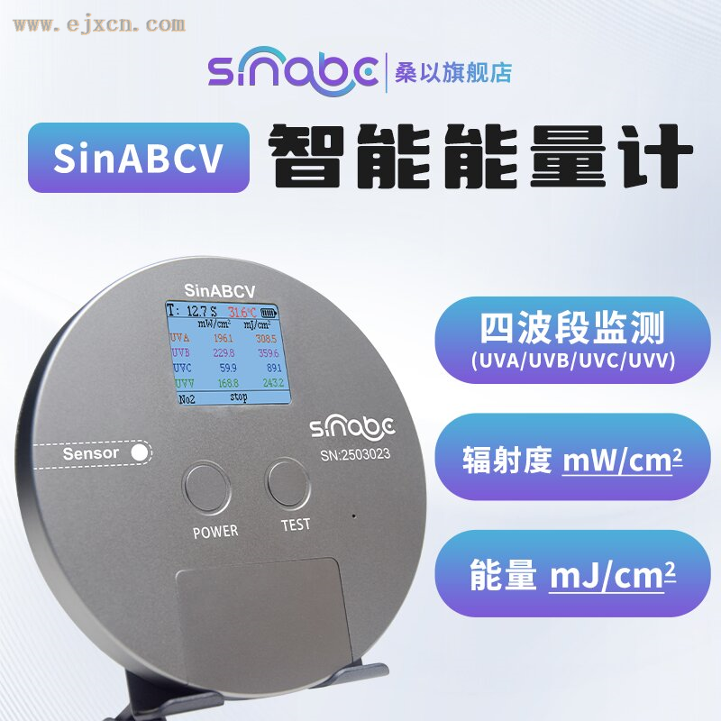 SinABCV智能款UV能量计是一款为电子元件行业、喷涂行业、UV镀膜行业、印刷行业等行业提供精准、可靠能量数据的高精度记录仪,可用于测量和记录UV能量(mJ/cm²)和UV辐射强度(mW/cm²),内置高灵敏度紫外传感器和高速数据采集模块,能够实时监测并完整记录紫外线照射过程中的关键参数。