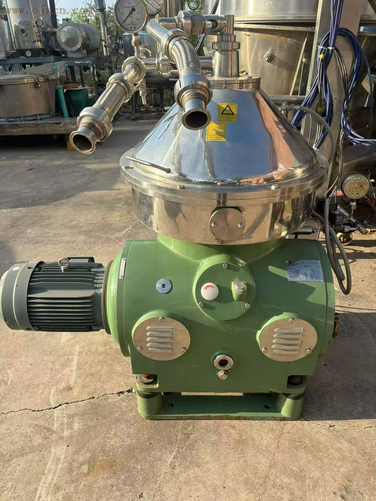 3. 技术特点:采用DHN360型碟式结构,配备7.5kW皖南高效电机,转速稳定、分离效率高;整机为食品级不锈钢材质,耐腐蚀、易清洁,支持全自动排渣,操作自动化程度高。